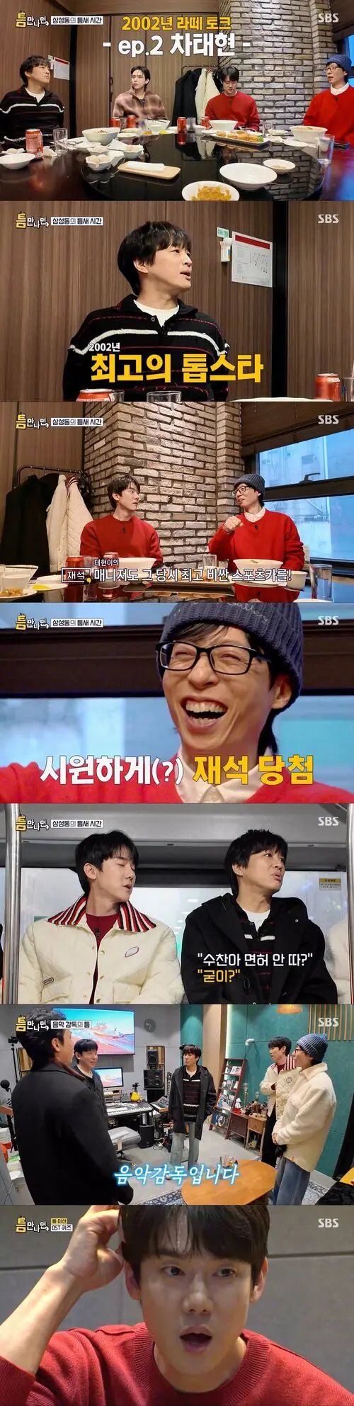“That was my peak,” Cha replied. “Right after 'My Sassy Girl'―when I had nothing lined up but everything was happening. Back then it was like, ‘Who’s Yoo Jae-suk? Tell him to wait.’” Yoo burst out laughing and backed him up: “It’s true. Tae-hyun’s popularity was insane―crowds would flood the streets wherever he went. Even his manager was cruising around in a top-of-the-line sports car.” Cha quipped, “Everyone had lost their minds,” cracking up the table.