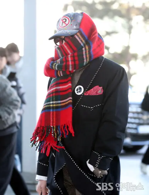 G-DRAGON touched down at Incheon International Airport on Jan. 20, bundled up against the chill as he made his way to the departure gates for Paris Fashion Week.