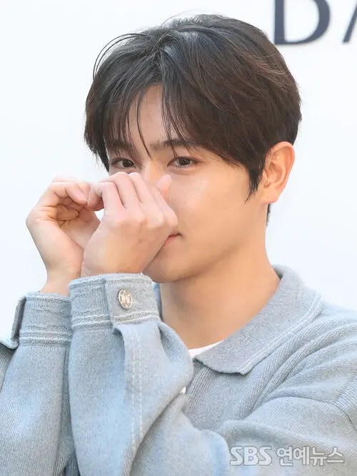 Hyunjae of THE BOYZ turned heads at a fashion brand’s photo call in Seongsu-dong, Seoul, on the morning of Jan. 29, striking sleek poses on the photo wall.