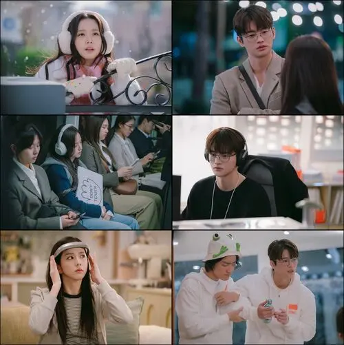 First up, JISOO plays Mirae, an office worker so buried in “real life” that love has fallen to the back burner. Newly released character photos show Mirae trudging to work with an exhausted face. She nods off in noise-canceling headphones, like someone dreaming of tuning out the world―textbook everyday employee energy. Another still captures her hopping from foot to foot outside in the dead of winter. Her up-and-down office life sparks curiosity, and then comes the eye-catcher: Mirae slips on the "Boyfriend on Demand" device with a curious look. What kind of dates await her in VR? The anticipation is real.