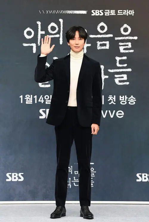 Kim Nam-gil poses during the photo time at the online press conference for SBS’s new Friday-Saturday drama “Through the Darkness,” held at SBS in Mok-dong, Yangcheon-gu, Seoul, on the afternoon of the 11th.