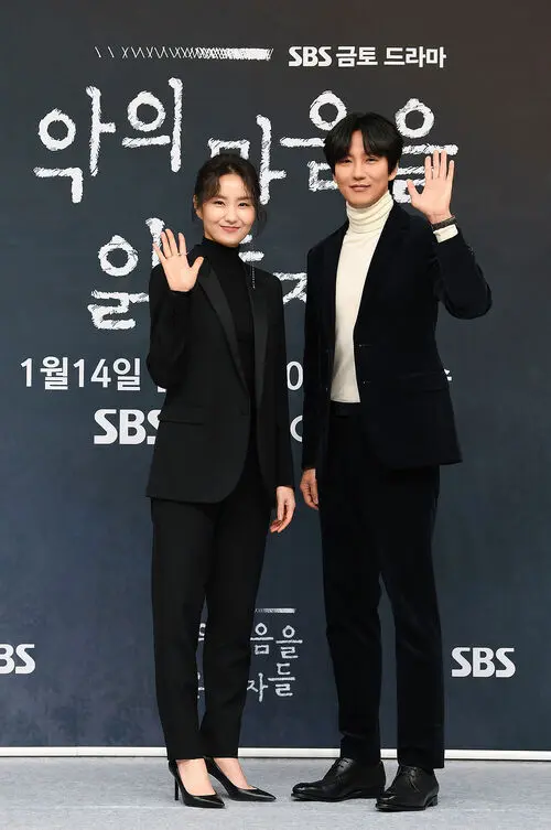 Kim Sojin (left) and Kim Nam-gil pose during the online press conference for SBS’s new Friday-Saturday drama Through the Darkness, held at SBS in Mok-dong, Yangcheon-gu, Seoul, on the afternoon of the 11th.