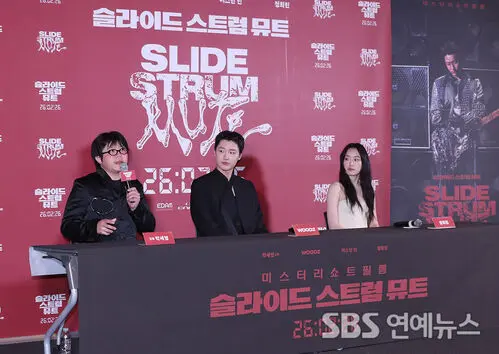 Director Park Se-young (from left), WOODZ, and Jung Hoe Ryn take questions during the press Q&A for the film 'Slide Strum Mute' at CGV Yongsan I'Park Mall in Yongsan-gu, Seoul, on the afternoon of the 20th.