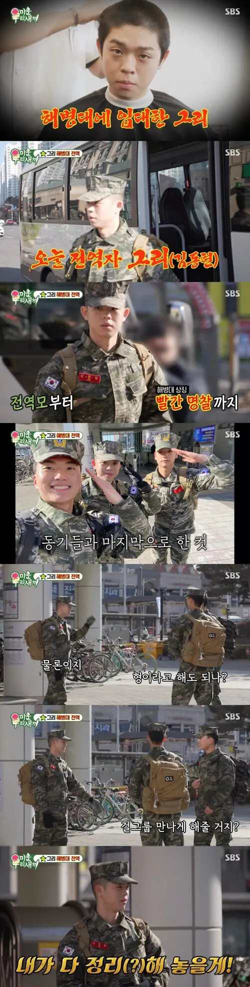 On the February 22 episode of SBS’s "My Little Old Boy," Kim returned to the show after his discharge.