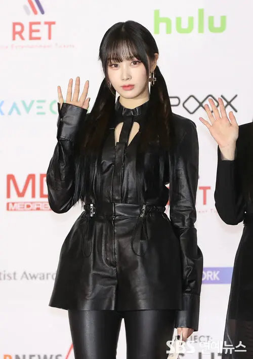 GISELLE of aespa strikes a pose at the 2021 Asia Artist Awards photo wall at KBS Arena in Gangseo-gu, Seoul, on the afternoon of December 2.
