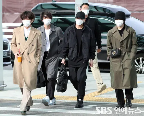 On the afternoon of the 17th, BTS members V, JIN, JUNG KOOK, and JIMIN arrived at Incheon International Airport, heading to the departure hall as they set off for Los Angeles for U.S. schedules.