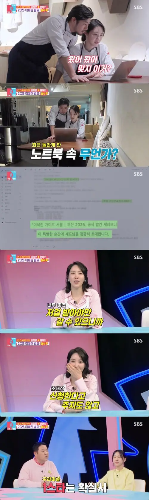 It was an invitation to the 2026 Michelin Guide. “You can only go if you get this,” she said. Watching, Kim Sook chimed in, “If they’re inviting you, doesn’t that mean they’re giving you something?”
