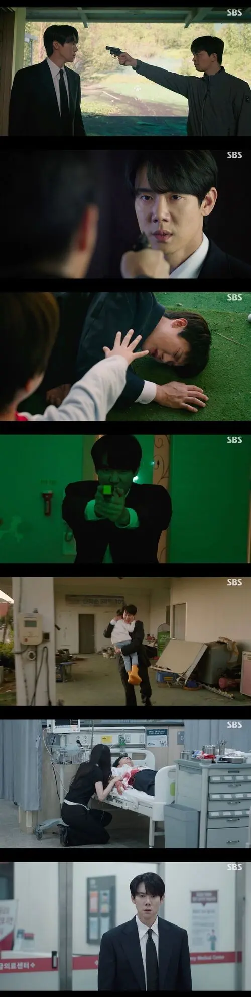 Shin I-rang headed to the hospital with the child. But he had taken a bullet to the abdomen. He collapsed.