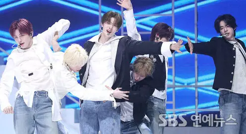 The group TWS is performing their title track "You, You" at the media showcase held to commemorate the release of their 5th mini album, 'NO TRAGEDY,' at the Yes24 Live Hall in Gwangjin-gu, Seoul, on the afternoon of April 27.